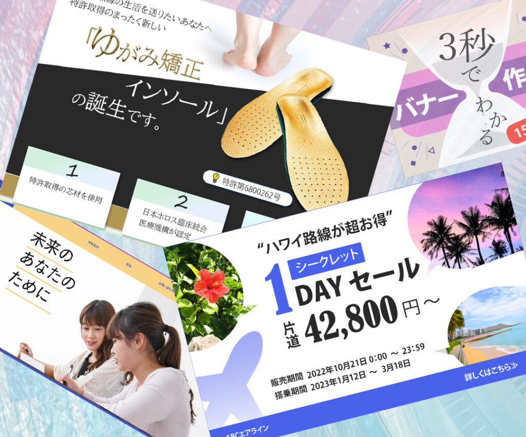 Jikky Design portfolio Jikkyのサイトにおいで下さり、ありがとうございます。WEBとGRAPHIC のデザインと手描き動画をお楽しみください。ヒートマップ解析も承ります。 サービス LP/HP/WEB画像制作 お店や会社のホームページ、そこに繋がるためのランディングページやキャッチなバナーやインスタグラムなどのWEB画像を制作します。 手描き動画アニメーション 手描き動画によるアニメーションで、あなたの紹介や事業の商品等の情報紹介をします。 グラフィック全般 ロゴや名刺、ショップカードやチラシ等、グラフィック全般物をお受けいたします。 自己紹介 - about me Jikky(ジッキー)と申します。子供の頃から、絵をかくのが好きで、将来は漫画家になると言ってました。以来、イラストや絵を描くことに夢中になる青春を送りました。結婚し、子育ても終わり、やっぱり絵やデザインは諦められないと、グラフィックやweb画像制作のお仕事を始めています。最近では、手描き動画アニメーションの制作も始めましたので、ますます、お仕事の幅が広がると思います。 Jikky について Skills Photoshop 10年Illustrator 10年Wix 2年filmora 1年After Efect 1年ヒートマップ解析士 ヒートマップ解析士とは ヒートマップとは、Webサイトのアクセス状況やユーザーの行動を、色の濃淡で視覚的に表現したものです。これにより、Webサイトのどの部分がユーザーに注目されているのか、逆にどこが改善の余地があるのかを直感的に把握することができます。その問題点を分析することにより、ユーザーの離脱を防ぎ、購入行動に移るという、Webサイトの本質的な改善を提案することが出来ます。是非ご相談ください。 手描き動画アニメーションとは 真っ白な背景に文字やイラストを描いて、それをアニメーションのように説明を加えながら、動かしていく手法です。動画コンテンツの記憶定着率は、テキストコンテンツの約2倍に及ぶと言われています。内容を理解してほしい、覚えてほしいという時に効果があります。音声や映像によって動画の印象を変化させたり、ユーザーの感情をコントロールできたりと様々な可能性があります。文字に比べて動画のシェア率は3倍UPするとTwitterの研究でも出ており、SNSとの相性も良いです。 制 作 バナー/WEB 画像制作 画像をクリックすると拡大します 節税効果宣伝バナー 証券会社の節税効果をうたうバナーを制作しました。固くならず、気軽に始めることが出来る雰囲気を出しました。 ココナラ出品バナー ココナラで出品しているバナー広告です。目立つだけでなく、落ち着いた中に主張のあるバナーにしました。 航空会社セールバナー ハワイ旅行を航空会社がセールをするとの元、架空ですが自身も行ってみたいと思うバナーを作ってみました。 インスタグラムFV インスタグラムのWEB画像です。 HP(ホームページ) LP(ランディングページ)制作 画像をクリックすると拡大します LP インソール 特許を取っている高級インソールのLPです。高級感を持ちつつ、庶民的なところも挿入して、老若男女問わず安心して見ていただけるよう配慮しました。 LP BtoB営業 BtoB営業代行のLPです。フレッシュで元気ある活動的なイメージで、信頼感のあるLPになっております。 LP Golf キャンペーン ゴルフ100切りキャンペーンのLPです。キャンペーンの内容が、最初の画面(FV)でわかるようにし、次に続けるようにしました。 HP 株式会社Sample 株式会社SampleのHPです。わかりやすいレイアウトで、暗い色合いの会社HPが多い中、明るめの色合いで会社の説明、案内をしています。 LP WEBデザイナー講座 WEBデザイナー育成講座のLPです。楽しくわかりやすい講座ですが、しっかりと気を引き締めて取り組む気持ちを深紅の色に表しました。 グラフィック全般 画像をクリックすると拡大します Flyer A4 自動車整備 自動車整備会社のチラシです。女性に訴求したいと言う事でしたので、2色のバリエーションをつくりました。 Flyer はがきサイズ ポストに投函するハガキサイズのチラシになります。個人情報は伏せております。 Flyer はがきサイズ 店頭等に据置、持って帰ってもらうタイプのチラシです。個人情報は伏せております。 Logo ヘアーサロン ヘアーサロンのロゴになります。上品な配色で、若い人向けですが、高級感をだしました。 Logo Jikky Design Jikky Designのロゴを看板にしてみました。 Logo 水道設備工事店 水回りのメンテナンスを請け負うと言う事で、水をメインにイメージして作成しました。 S-card ヘアーサロン ヘアーサロンのロゴを生かして、ショップカードを作成しました。 S-card コーヒーショップ コーヒーショップのショップカード兼名刺になります。シンプルに作成しました。 手描き動画アニメーション お問合せ お問い合わせはこちらへ 氏名必須 メールアドレス必須 題名必須 メッセージ本文 (任意) Δ